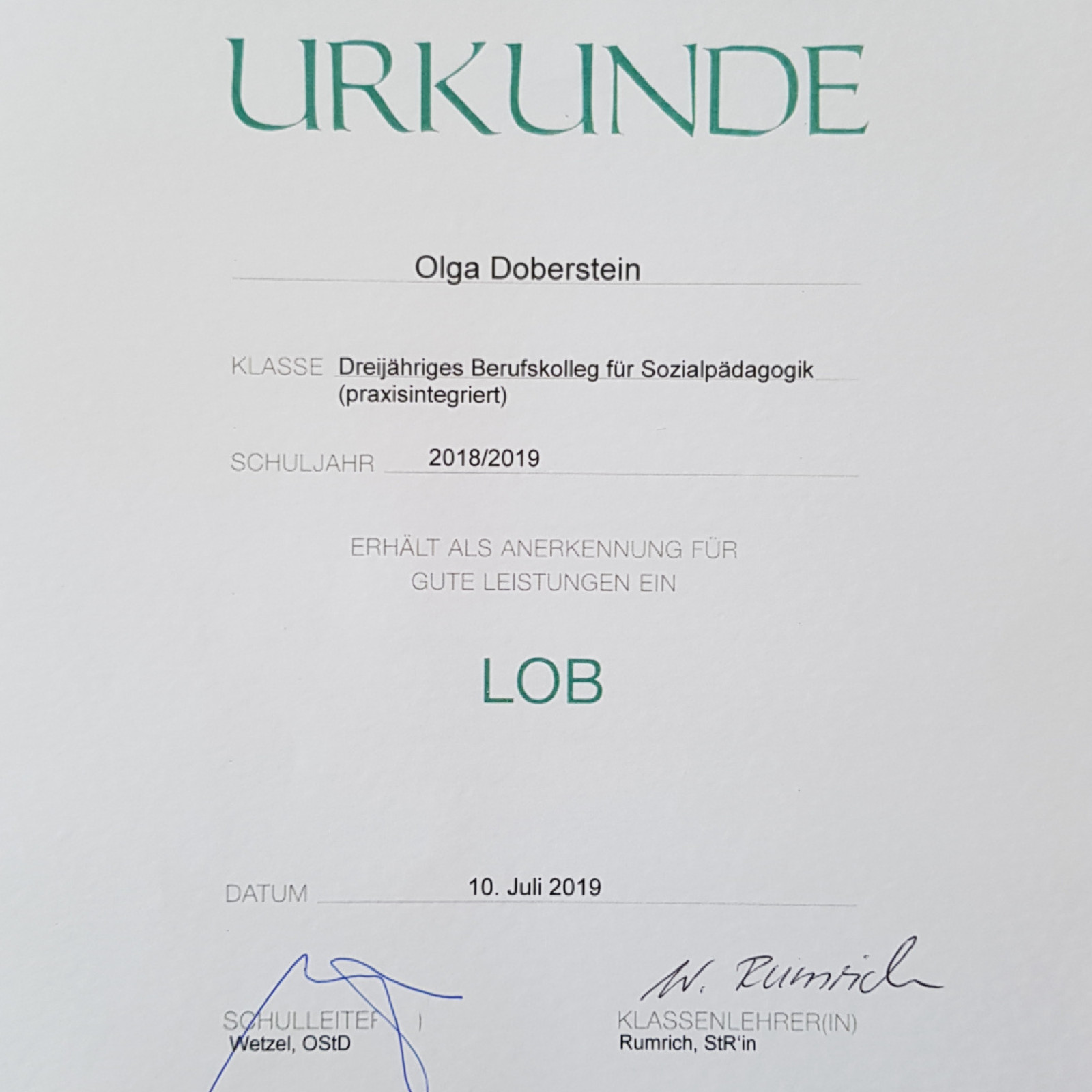 erfolgreich mit der Lob Auszeichnung im Jahr 2019 absolviert. Gleich danach